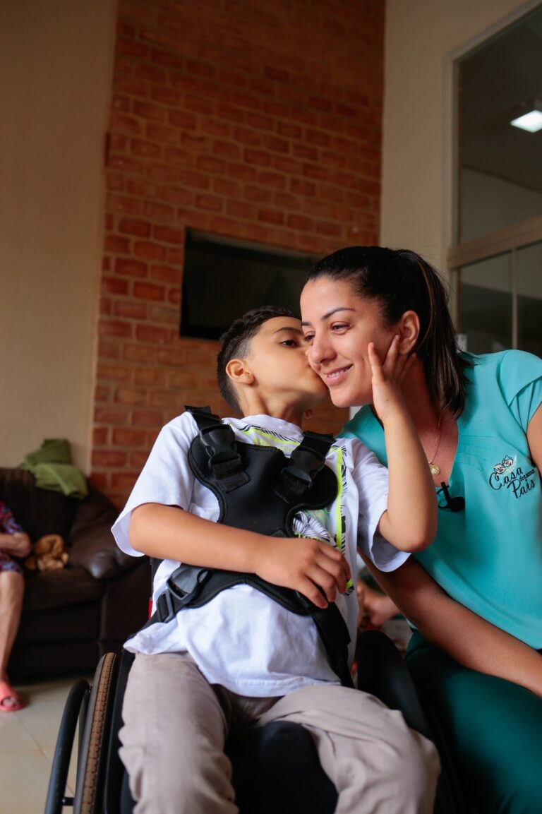 Um momento de profunda paixão e cuidado. Na foto, vemos todo carinho que temos pelas crianças da Casa dos Nossos